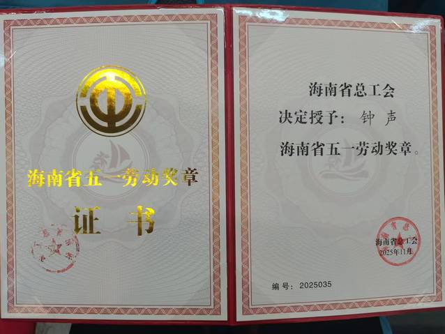 2025年11月26日,海南省总工会在海口隆重举行2025年海南省五一劳动奖和海南省工人先锋号表彰大会。我院90315班工业管理工程专业毕业生、南方电网海南电网海口变电分公司高级工程师钟声,被授予海南省五一劳动奖章荣誉称号。