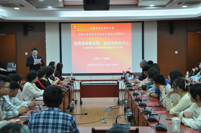 校关工委常务副主任石奇光以“能源强国新征程,奋进有我电力人”为主题,结合结合电力行业奋斗经历与入党初心,为入党申请人培训班讲授课程。他通过红色故事阐释电力精神传承路径,引导青年对接国家能源战略需求,筑牢信仰之基。