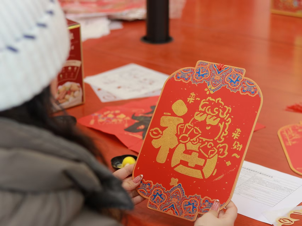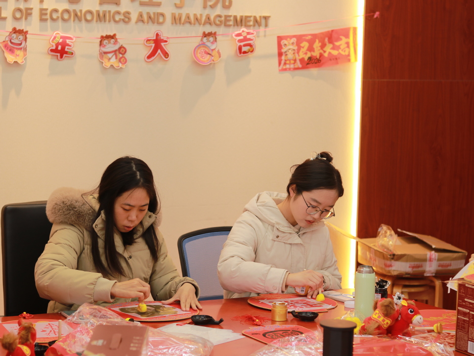 慰问座谈会圆满落幕之后,学院精心筹备了留校学生新春联欢活动。同学们欢聚一室、暖意相依,共同参与了“迎春送福”拓扇及剪窗花活动。活动过程中,大家满怀热忱、全情投入,动手拓印了一份份精美的扇面,将“福”字书写在纸面、将窗花剪出各色形状,在动手实践中传承传统文化、陶冶情操。整场活动氛围轻松和睦、暖意融融,一件件凝聚着同学们巧思与心意的手工作品相继诞生,每一件作品都承载着大家对马年新春的美好向往与真挚期盼。