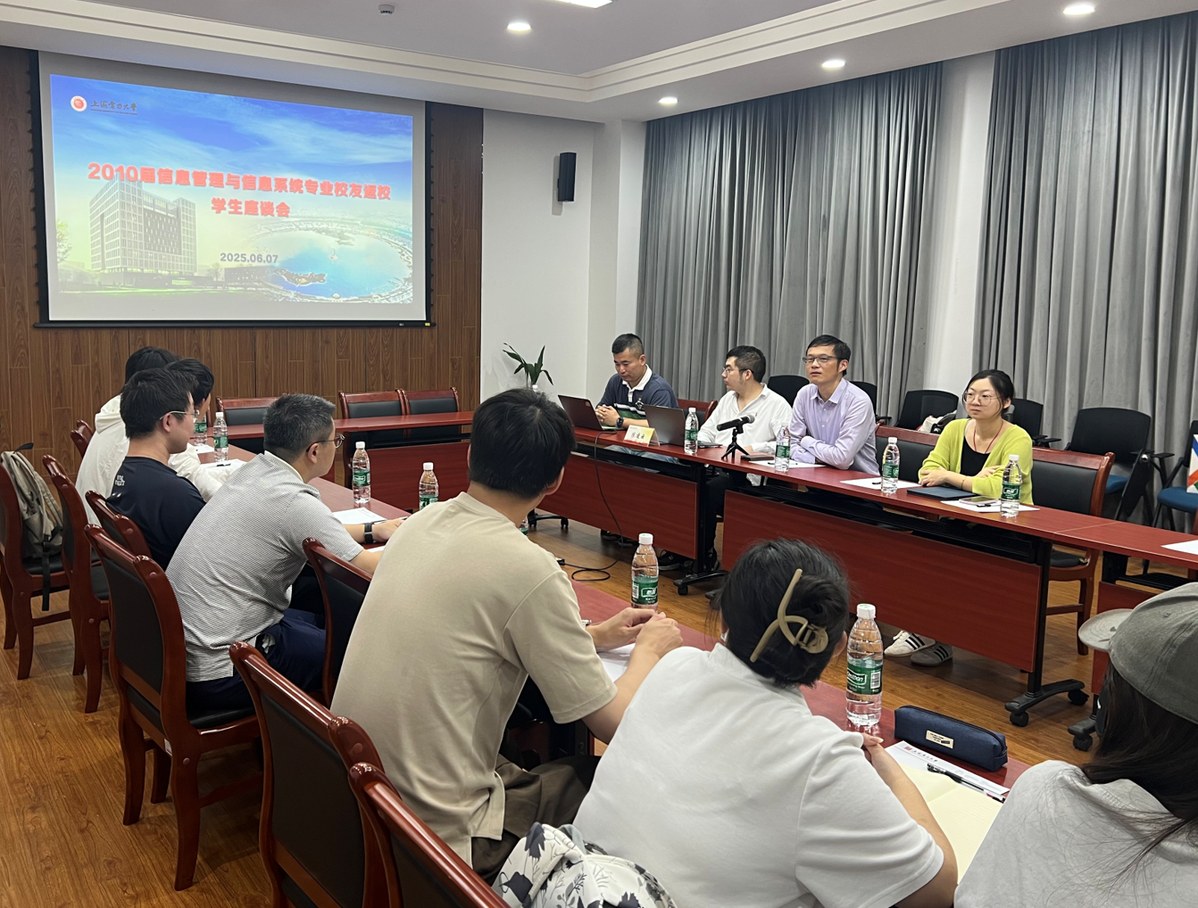 6月7日,一场满载知识与温情的校友返校座谈交流会在临港校区学术楼105热烈开展。2010届经管学院信息管理与信息系统专业、现就职于上海用友政务公司的优秀校友张翔及同事陈凌云重返母校,与大三信息管理与信息系统专业学子齐聚一堂,分享职场经验,共话专业发展,为同学们带来了一场别开生面的交流盛宴。学院党委副书记、常务副院长潘华,辅导员王卲萱参加了交流会。