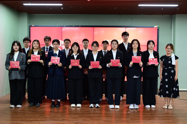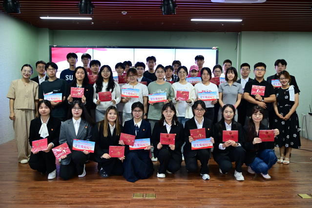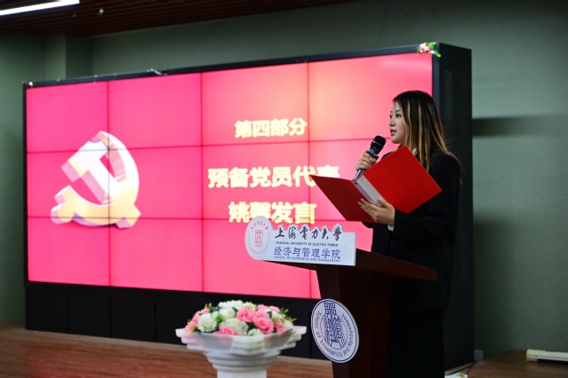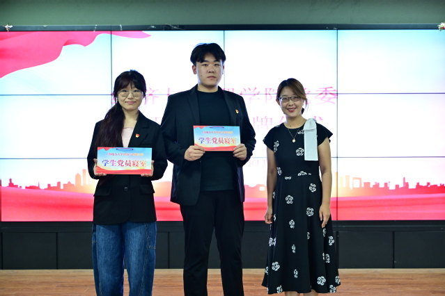 首先,在新发展党员入党宣誓环节,周颖宣读新发展党员名单,孟延新为新党员颁发贺卡、佩戴党徽。在学生党员吴继慧领誓下,全体新党员面向党旗庄严宣誓,铿锵誓言响彻会场。宣誓完毕后,预备党员代表姚馨传达了全体新发展党员的心声,她表示:“从今天起,我们将以党员标准严格要求自己,在学习生活中践行誓言,让青春在奉献中闪光。”