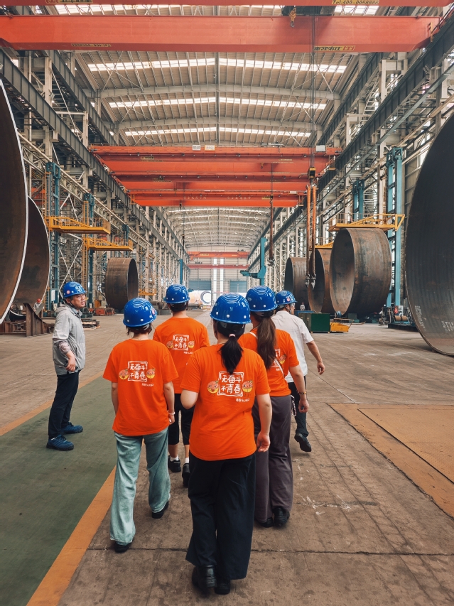 响应国家“双碳”战略,这些领军企业将绿色低碳理念融入产品全生命周期。江苏海力风电专注于海上风电零部件制造,队员们调研时了解到,其海上风机在20-25年运行期内实现真正的零碳排放与零污染;企业正积极探索叶片回收等全产业链绿色化举措,单台风机全生命周期可减排数十万吨二氧化碳。在上海电气风电东台公司,队员们近距离观察配备智能偏航系统的风力发电机,更对其应用的AI大模型+传感器实现“不停机故障检测”印象深刻,感受到技术如何显著提升风电可靠性与经济效益。