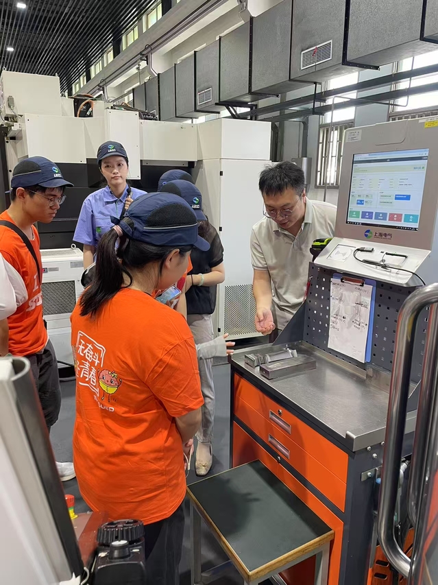 实践队所到之处,智能制造正深刻重塑传统生产模式。在上海电气汽轮机叶片研发中心,队员们目睹数字孪生平台实时映射设备运行,料箱二维码一键溯源,三坐标测量仪守护毫米级精度。