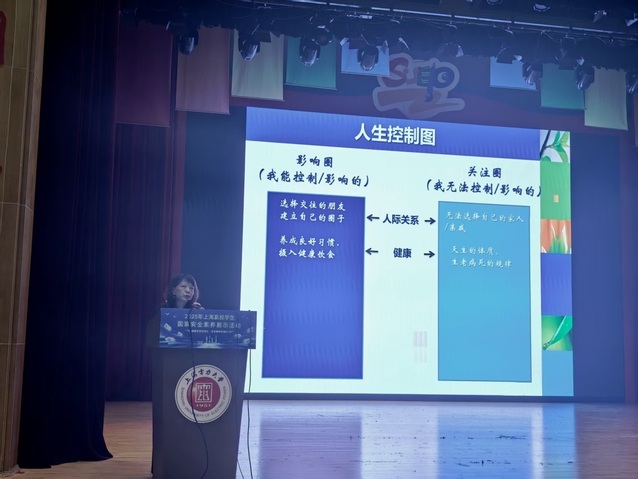 讲座第二部分,蔡老师重点介绍“人生控制图”这一实用心理工具。她指导同学们将生活中的事物划分为“可直接控制”“可间接影响”“无法控制”三类,并建议大家将精力聚焦于“可直接控制”的事物,积极通过行动扩大“可间接影响”的范围,同时学会坦然接纳“无法控制”的部分,以此减少内在消耗,高效分配心理能量。