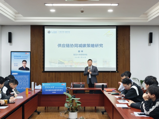 报告中,田林教授结合全球“双碳”目标发展背景,以最新研究成果为基础,结合企业实践案例,系统阐释了供应链协同减碳的核心内涵与重要意义。他指出,企业绿色发展已从单一的自身减碳转向全供应链协同减碳,需覆盖原材料采购、生产制造、物流运输到产品回收的全链条管理环节。同时,田林教授深入剖析了信息共享、技术创新、绿色采购、低碳物流等供应链协同减碳的关键手段,详细解读了低碳供应链协作机制的构建方法,并针对协同减碳过程中面临的实际挑战,提出了针对性的解决思路与实施路径,为在场师生带来了一场兼具学术深度与实践价值的专业分享。