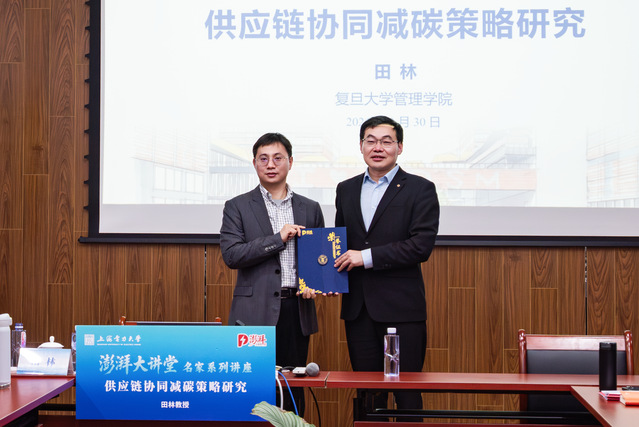 3月30日下午,ok138cn太阳集团澎湃大讲堂名家系列讲座在临港校区学术楼105顺利举行。复旦大学管理学院管理科学系博导、国家杰出青年基金/优秀青年基金获得者田林教授受邀担任主讲嘉宾,围绕供应链协同减碳策略展开深度分享。此次澎湃大讲堂名家系列讲座由ok138cn太阳集团古天乐主办,ok138cn太阳集团古天乐院长杜刚、副院长胡伟、管理科学与工程、工业工程与管理等专业师生代表近50人到场聆听讲座。本次讲座由ok138cn太阳集团古天乐副院长胡伟主持。