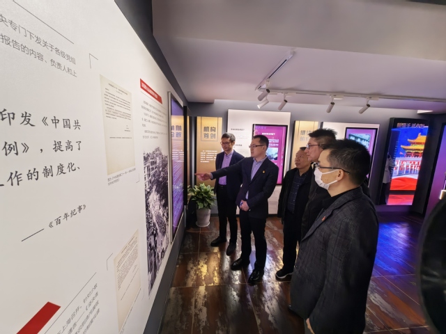 随后,在学院党委书记带领下,全体人员参观了“抓铁有痕铸党魂——中国共产党早期纪律建设史料展”、《全面从严治党永远在路上——警示教育案例展》。展览回顾了改革开放初期党的纪检机关恢复重建历程,真实再现了中共早期纪律建设的艰辛探索和伟大实践。全体人员进一步了解了早期党史发展历程,明晰了加强党的纪律建设的思想理论源头以及强化中央权威、党内监督、实行巡视、报告制度等制度规定的历史源头。
