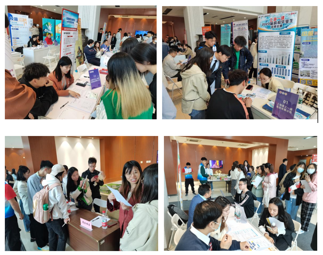 经过前期的紧张筹备,本次招聘会共邀请包括上海建工一建集团有限公司、上海市机械施工集团有限公司、上海电力建筑工程有限公司、上海电力安装第一工程有限公司、上海中远海运物流有限公司、长江证券股份有限公司、正大卜蜂食品(上海)有限公司等49家企业参加招聘会,包括银行、建筑、物流、教育、销售、行政、运营等岗位,招聘专业涵盖所有经管、外语类专业。
