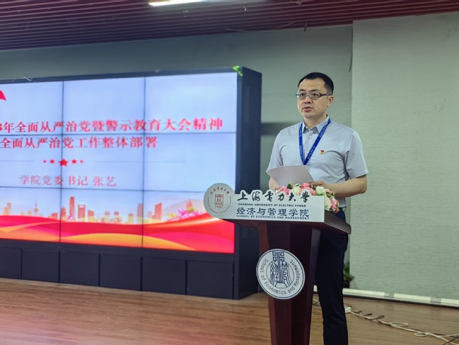 张艺传达了2023年学校全面从严治党暨警示教育大会精神,总结了2022年学院全面从严治党工作。在部署2023年工作任务时,他指出,一是要以有力的政治引领保证主题教育在学院取得实效;二是要以深入的思想动员激发全院教师干事创业的精神状态;三是要以严明的纪律建设和制度约束营造学院风清气正的政治生态;四是要以权威高效的监督体系保证党的决策部署落实落细;五是要以完善的压力传导机制推动全面从严治党纵深发展。