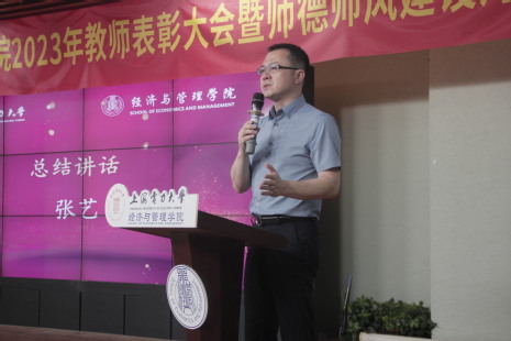 最后,张艺进行总结讲话,对学院广大教师提出了三点期望:一是希望广大教师要坚持以习近平新时代中国特色社会主义思想为指导,带头学思践悟习近平总书记一系列治国理政新理念、新思想、新战略;二是要自觉坚定理想信念、厚植爱国情怀、涵养高尚师德,自觉增强立德树人、教书育人的荣誉感和责任感;三是要坚持学高为师、德高为范,提升能力本领,培育仁爱之心,做到严爱相济、润己泽人。