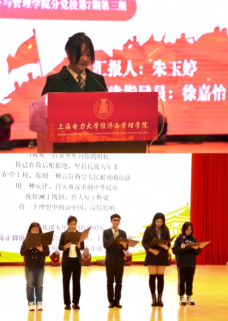 在优秀小组展示分享环节,第三组代表朱玉婷同学台上分享了他们党建小组在学习和参加党校活动中的心得体会和收获。以及介绍如何通过小组成员参观中共二大会议遗址这一活动学习党章,学习贯彻党的二十大精神,传承红色基因,赓续前行。她用真挚的话语表达了对组员们的感激和对未来学习的信心。第三组学员还为大家带来了诗朗诵《党耀中华,祖国芬芳》,慷慨激昂的语气让在场的所有学员心中涌起浓烈的家国情怀,同时让他们对自己的未来充满信心和期待。