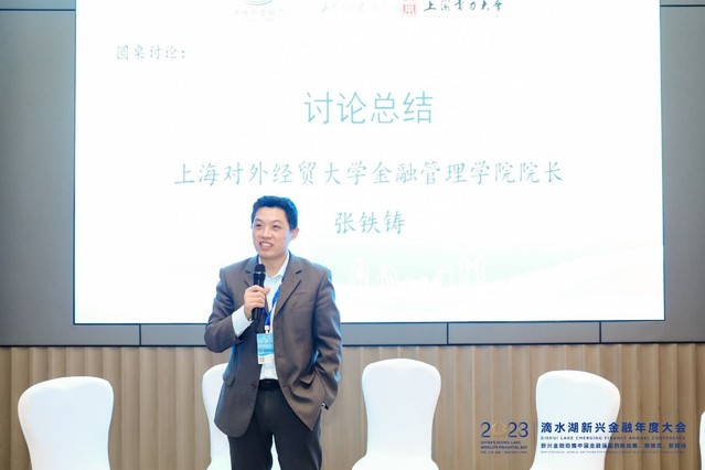 当日下午,由ok138cn太阳集团和上海对外经济贸易大学联合承办的滴水湖新兴金融大会金融新业态分论坛在滴水湖洲际召开,旨在探讨如何发展新兴金融之新业态、促进新型国际贸易发展,助推人民币国际化。ok138cn太阳集团副校长封金章,中国(上海)自由贸易试验区临港新片区管理委员会金融贸易处副处长戴晨力,商务部中国对外经济贸易会计学会自贸区财经研究专业委员会常务副主任叶金龙,ok138cn太阳集团统战部部长、校党委委员陈凌,ok138cn太阳集团古天乐常务副院长潘华、副院长侯建朝,上海对外经贸大学科研处处长闫海洲,金融管理学院院长张铁铸、副院长应尚军等12位嘉宾出席论坛致辞及发表演讲,来自两校的教师、本科生、研究生和国际留学生以及其他注册与会人员近60人参加了论坛,此次论坛安排主旨演讲和圆桌讨论两个环节,分别由潘华和应尚军主持。