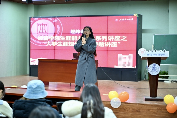 会上,张硕从“考研、考编、出国、就业的时间节点与筹备事项”“商科可从事行业与岗位解析,岗位能力要求与晋升路径”“目标就业岗位的人才需求画像与自我提升方向”三个板块进行就业规划指导。结合当今社会对于人才的需求,引导学生进行职业倾向剖析,并做好生涯规划,帮助同学们树立正确的价值观、就业观。她对“职业生涯规划”进行了充分的解读,强调了职业生涯规划的重要性,加深学生对未来求职的理解。她以丰富的实战经验和前瞻性的行业见解为在场的学生解读了当前职业市场的最新动态,深入浅出地分析了金融相关行业的发展趋势、热门岗位和未来技能需求,为学生们提供了独到的职业规划建议。同学们纷纷表示收获颇丰,言之有实。