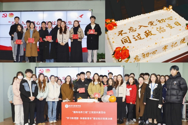 12月27日,经管学院在经外楼A305举行“学习新思想·争做新青年”理论知识竞赛决赛。此次活动为经管学院“雁阵培养工程”党团共建系列活动之一,在网络初赛的基础上,从党支部、团支部中选拔了24名同学组成8支队伍参赛。参与此次活动的有学院专职组织员周颖、党支部书记王卲萱、王祎、高欣月,以及80名学生代表。
