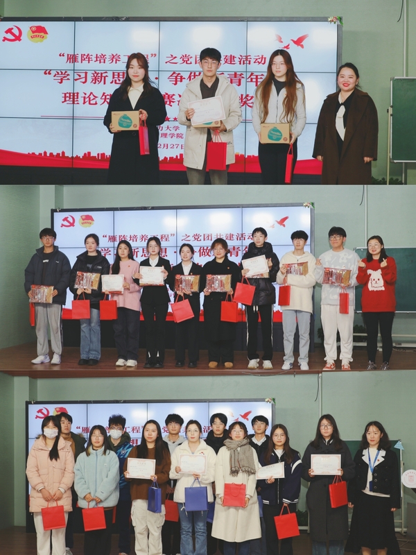 在表彰环节,学院为本次知识竞赛初赛的“学习先锋”10名颁发荣誉证书。最终比赛结果为应经1队获得一等奖,应经2队、管科1队、2队获得二等奖,工程1队、2队、工商1队、2队获得三等奖。本次比赛不仅让同学们重温了党的光辉历史,更展现了我院大学生扎实的理论功底和紧密合作的团队精神。