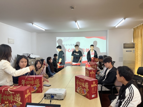 会后,孟延新与阿布都如苏力还为同学们送上慰问大礼包。涓涓细语,暖暖温情,一份份精致的慰问礼品承载着学院对少数民族同学们深切的关怀,以实际行动将关爱和祝福送到同学们的心中。