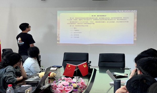 接着,周颖就党建实务培训以及《中国共产党发展党员工作细则》导读向同学们进行详细的解读。她从源头向学生解释了从提交入党申请书到成为一名光荣的共产党员中间所要经历的培养过程,并耐心细致的带领我们逐章逐字学习《中国共产党纪律处分条例》,引领同学们稳思想之舵,强思想之基。
