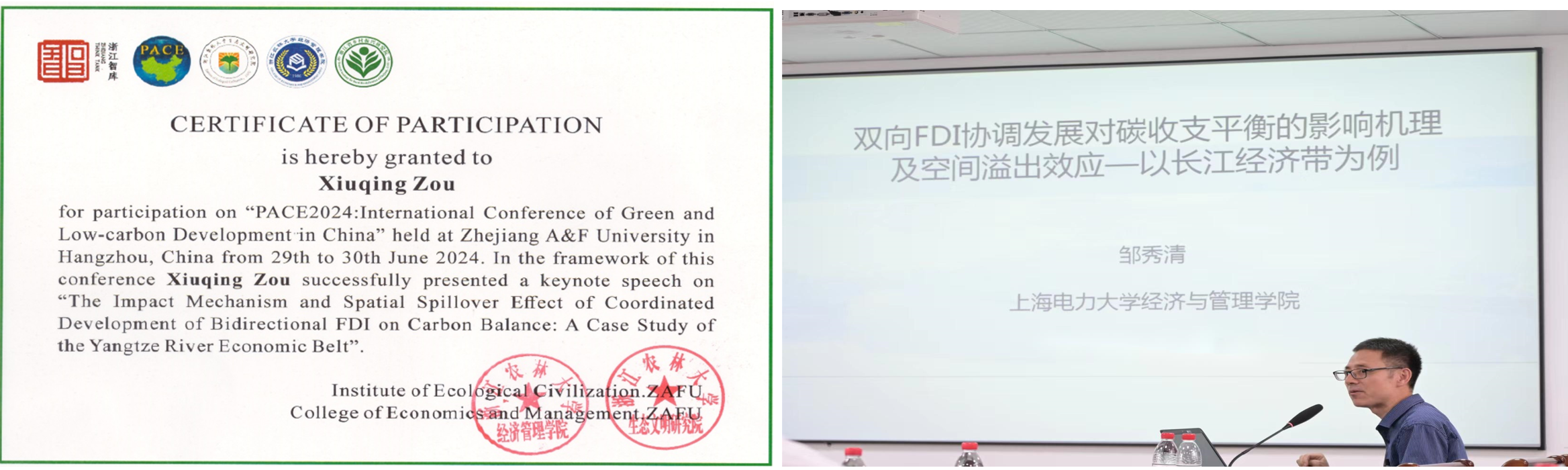 2024年6月28日至30日,为推动我国绿色低碳制度政策创新,促进生态环境治理体系与治理能力现代化,实现中国经济社会全面绿色低碳转型,环球中国环境专家协会(PACE)与浙江省新型重点专业智库浙江农林大学生态文明研究院共同主办的“PACE2024中国绿色低碳发展理论与政策国际研讨会”在杭州举行。来自英国伦敦学院大学、英国雷丁大学、美国华盛顿大学、美国俄亥俄州立大学、日本早稻田大学、香港大学、澳门理工大学、中国人民大学、四川大学、浙江农林大学、ok138cn太阳集团等高校师生代表和来自国内外从事绿色低碳发展、生态文明及相关领域研究实践的专家学者、高校师生3.7万人次通过线上线下等形式参加会议。