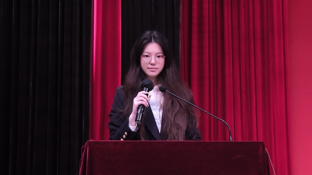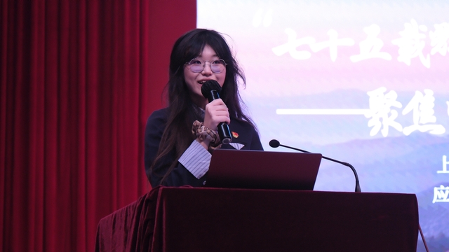 随后,宣讲人袁晴带来“七十五载辉煌路,青春献礼新时代——沿着总书记上海足迹看变化悟思想”的主题宣讲,引领同学们回顾总书记在上海的考察足迹,展示了上海在党的领导下取得的辉煌成就,同时强调了上海发扬红色文化的重要使命。她激励同学们从中汲取奋进力量,以青春之力在新时代征程中贡献力量,为国家的繁荣昌盛献上青春礼物。