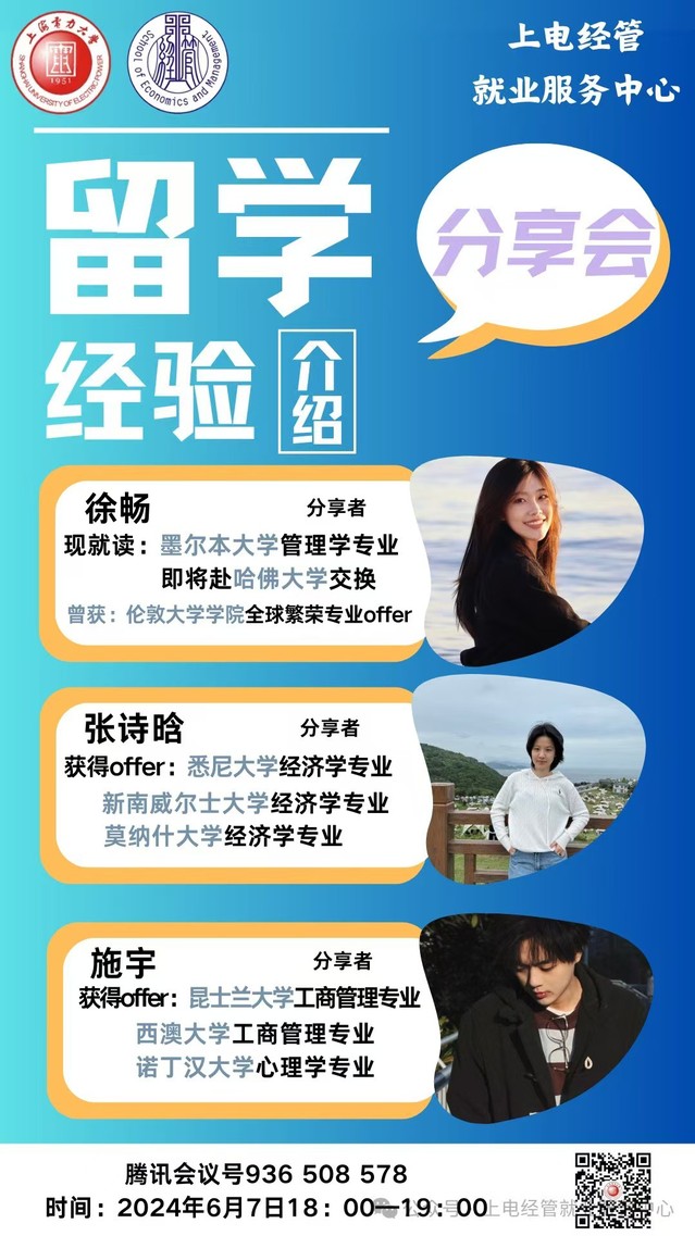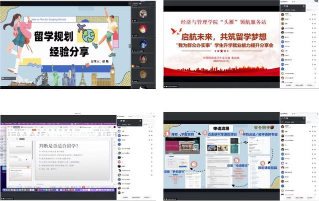 为帮助经管学子更好地规划留学之路,经管学院于6月7日举办了一场主题为“职引未来”的留学生经验分享会。此次活动吸引了众多有志于留学的学生,共同探讨留学规划、文书准备、实习与科研方向等关键问题。活动由经管学院辅导员展晴晴主持。