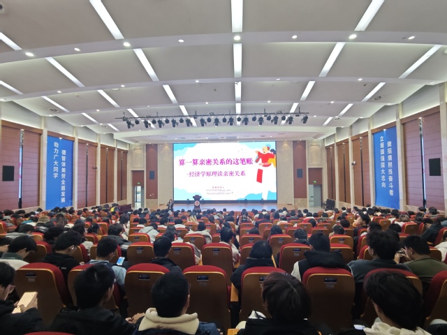 12月17日下午,ok138cn太阳集团古天乐特邀校心理中心蔡雅琦博士为2024级新生带来主题为“算一算亲密关系这账:以经济学原理谈亲密关系”的讲座。此次讲座贴合经管学院学生特点,旨在通过经济学的视角,帮助新生们深入理解亲密关系中的投入与回报,学会在大学生活中更加理性地处理人际关系。