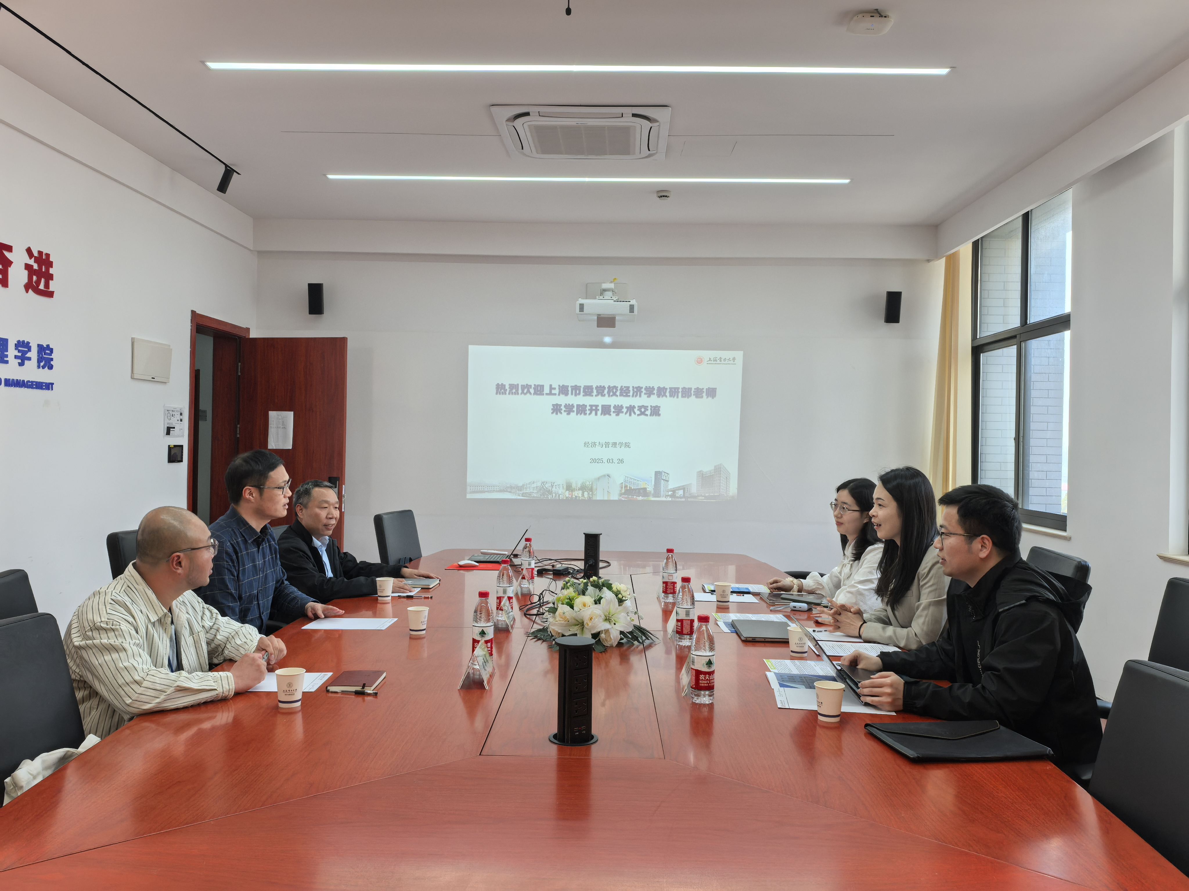 3月26日,上海市委党校(行政学院)经济部韩旭一行3人来学院调研交流。学院党委副书记、常务副院长潘华、副院长侯建朝、应用经济系教师刘平阔等参加了调研交流会。